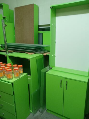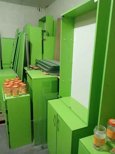 Yaşıl rəngdə modul vitrin və mağaza mebeli komplekti