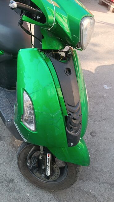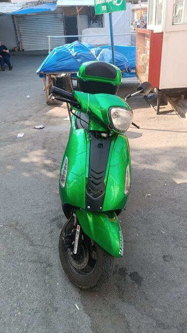 Yaşıl rəngli moped, hərəkət üçün rahat və praktik vasitədir. Təkərləri və oturacağı qara rəngdədir. Ön hissədə fənərlər, arxa hissədə isə baqaj qutusu mövcuddur. İdarəetmə paneli sürət və digər göstəriciləri əks etdirir. Şəhər içi hərəkət və ya qısa məsafəli səyahətlər üçün uyğundur.
