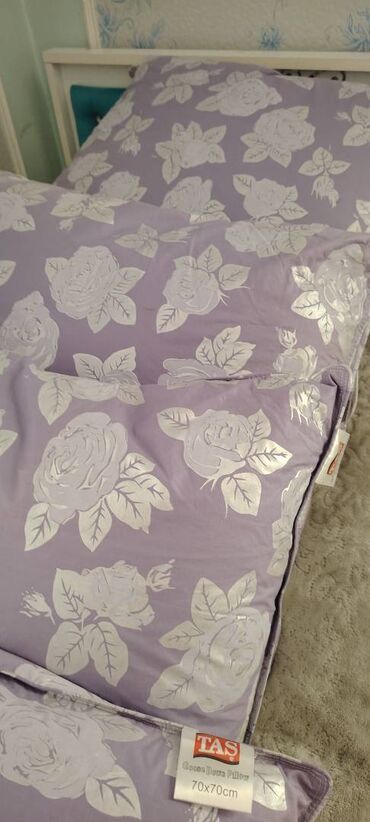 1 əddi 15 manat Ümumi 6 eded yastıq. Ölçü: (70x70) Çəki: 1.5 kq Tərkibi: qaz ve toyuq tükü qarışığı Yenidir, hazırlanıb lakin istifadə edilməyib.