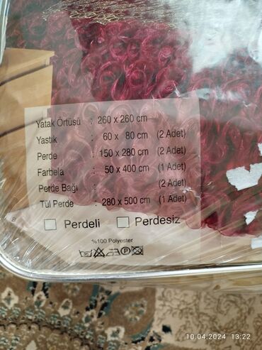 Yenidir yataq örtüyü heç istifadə etməmişəm.Nece alınıb elədə qutusunda qalıb şəklin çəkmək üçün açılıb.1 örtük 3 yasdiq uzu