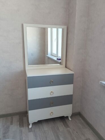 komod və vizaj masası - Komod variantları: 4 çekmecəli modellər. Müasir düz xətlər, zərif qızılı və ya qara tutacaqlar, hündür dekorativ ayaqlar. Açılış-sürüşmə rahatlığı olan geniş çekmecələr pal...