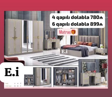 Yataq otağı üçün nəzərdə tutulmuş bu dəstə çarpayı, iki tərəf tumbası, güzgülü tualet masası və dolab daxildir. Dəst müasir dizayna malikdir və otağınıza zərif görünüş bəxş edir. Dolab geniş saxlama sahəsi təmin edir, güzgülü tualet masası isə makiyaj və şəxsi qulluq üçün rahatlıq yaradır. Yataq otağınız üçün rahat və funksional bir həll təqdim edir.