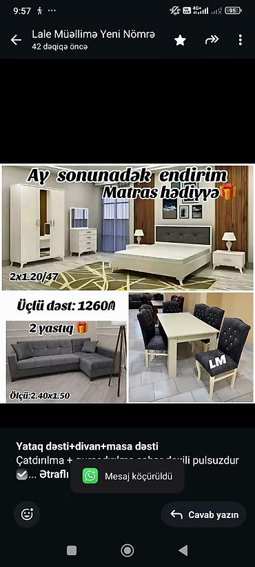 Yataq dəsti satılır 660₼..yaxşı vəziyyətdə.Ünvan saray qəsəbəsi.3286 Sevil1