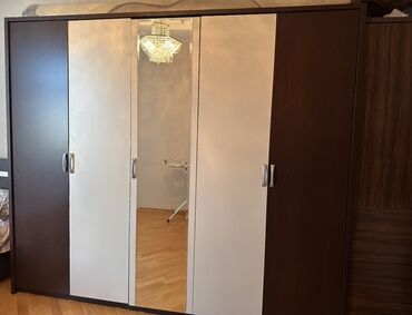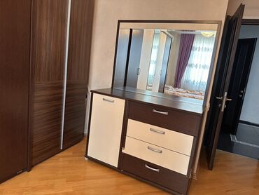 Yataq otağı mebel dəsti satılır. Dəst tərkibi: - İki tumbalı iri çarpayı (matras var, baza yoxdur) - 3 qapılı şkaf, ortası güzgülü - Güzgülü makiyaj/komod masa Xüsusiyyətlər: - Fabrik istehsalı -...