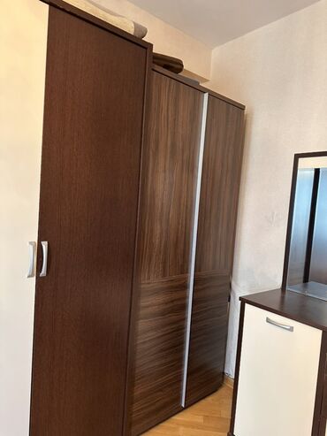 Mebel dəsti – dolab və tək nəfərlik çarpayı - Dolab: 2 qapılı, 3 çekmecəli, taxta fakturalı dizayn, tutacaqlar rahat. Ölçü: 200×90×47 sm. Qiymət: 185₼. - Çarpayı: tək nəfərlik, başlıqla. Ölçü: 200...