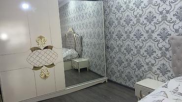- 3 qapılı kupe şkaf: bir tərəfi tam boy güzgülü sürgülü qapı, digər tərəfində qızılı naxış və dekor elementləri. Geniş saxlama üçün əlverişli.