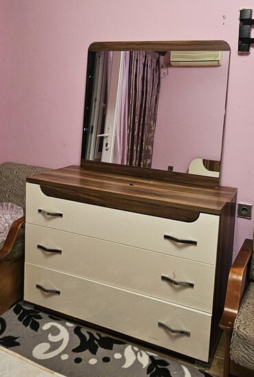 • Güzgülü komod – üst hissəsi qoz naxışlı, 3 geniş siyirtmə.