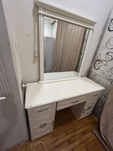 - Tualet masası: geniş iş səthi, böyük çərçivəli güzgü, ortada çekmece, hər iki tərəfdə qapılı bölmələr və əlavə kiçik çekmecələr.
