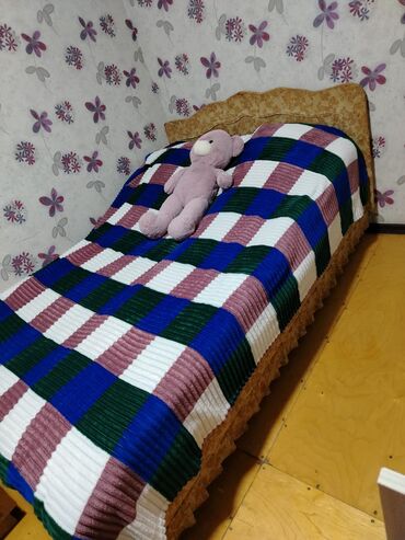 - Üstündə çoxrəngli (ağ-yaşıl-mavi-bənövşəyi) kvadrat naxışlı örtük görünür.
