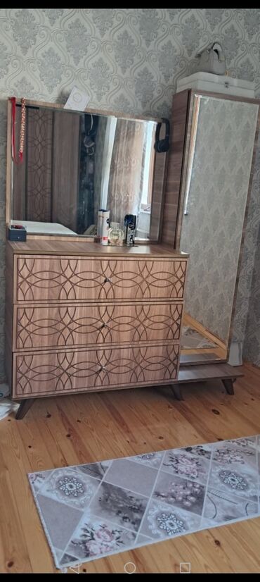 - Güzgülü komod: 4 geniş çekmece, üstündə iri güzgü paneli