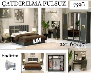 Yataq otagi dəsti Sifarişlə və yeni Qiymət : 759₼ Dəstə daxildir: Dolab : 2x1.60/47 Termo✔️ Taxt :1.60×2 +matras +baza 🎁 Tumbalar✔️ Rəng seçimi sərbəst🆘 Elani Screen Edib Watcapa Gonderi...