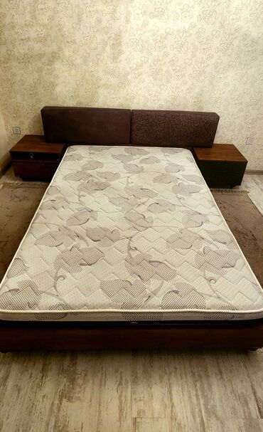 - Çarpayı: taxta karkas, yumşaq başlıq (iki hissəli, qəhvəyi rəngdə). Döşək üstündə naxışlı örtüklə. Çarpayının hər iki tərəfində eyni üslubda tumbalar.