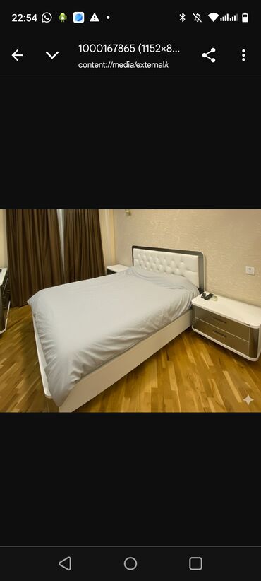 - 1 ədəd iki nəfərlik çarpayı (ağ rəngdə korpus, yumşaq dəri başlıq, düyməli kapitone işləmə)