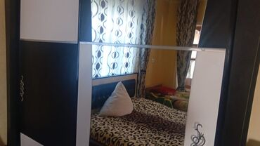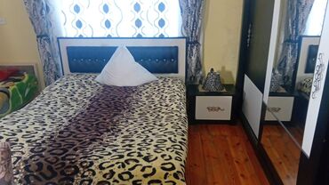 Yataq otağı mebel dəsti ikinci el Tərkibi: - 2 nəfərlik çarpayı (başlıq üzərində dekorativ relyefli elementlər, yumşaq panel) - Güzgülü makiyaj masasI/komod: 2 yan qapı bölməsi + ortada 3 ədəd çekm...