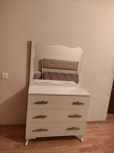 Klassik dəbdə yataq otağı dəsti Teze yatak desti, her terefi kraskalıdır, - Yataq çərçivəsi (iki nəfərlik ölçüdə), dekorativ oyma detalları və qızılı-bəzi rötuşlarla - 2 ədəd tumbə (3 çekmecəli) ...Giriş•Qeydiyyat