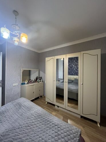 Yataq otağı dəsti – 680 AZN Komplekt: - Dolab: 200×160×47 (güzgülü sürgülü qapılar, bölmələr və asılqan hissə) - Taxt: 200×160 - Termo şkaf/vitrin: 80×180×40 - Tumba: 45×40 - Puf/komod hissəsi güz...
