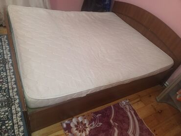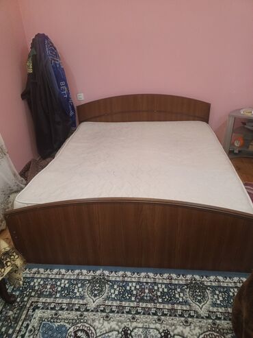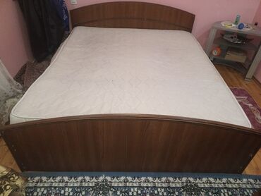 Yataq otağı mebel dəsti 1800 alınıb. 500 azn satilr - Yataq: taxta fakturalı karkas, yumşaq dəri başlıq elementləri və dekorativ güzgü ilə. Döşək üzərində güllü naxışlı örtük, standart ikinəfərlik...