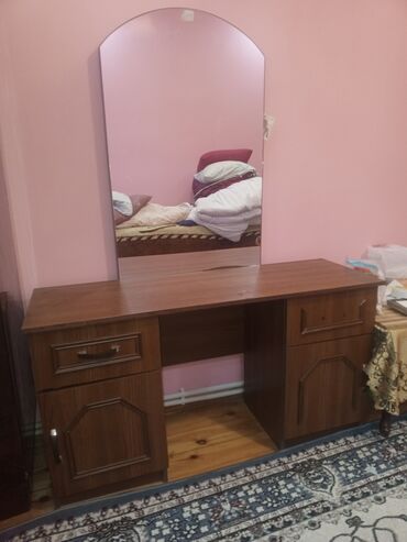 Yataq otağı mebel dəsti Səliqəli işlənib cızıq və qırıq yoxdur Tərkibi: - Çarpayı: yumşaq parça başlıq, taxta karkas; üstündə ortopedik döşək. Aşağı hissə taxta baza ilə. - Ayna masası: geniş üst ...