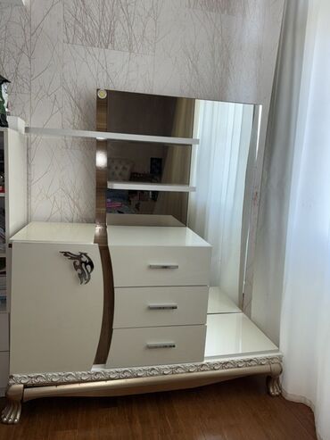 Məhsul: 4 qapılı paltar dolabı - Klassik-modern dizayn: açıq boz/bej tonlarda korpus, qızılı/gümüşü dekor xətləri. - Ön hissədə 2 böyük güzgü paneli – geyim seçimi və məkanın daha geniş görünməsi ...