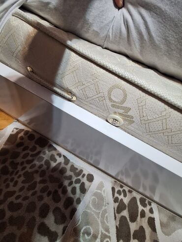 Yataq otağı dəsti – ağ rəngdə, klassik-modern dizayn. Tərkibi: - İki nəfərlik çarpayı: yumşaq başlıq (dəriyə bənzər üzlük), hündür taxta karkas, uyğun ölçülü döşək ilə. Minimalist düz baza, künclə...