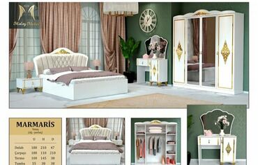 Yataq otağı dəstləri – modern dizayn, funksional yerləşim və zərif rənglər. Variantlar: - “Aura” yataq dəsti (Woodpecker): zərif krem/ağ tonlarda, qızılı dekor elementləri ilə. Geniş çarpayı başlı...