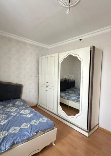 - Şkaf: hündürlük təqribən tavana yaxın, 3 qapılı (1-i güzgülü), daxildə asılqan və rəf bölmələri