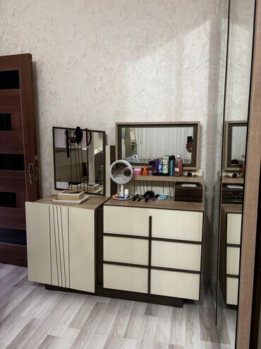 - Komod/tualet masası: iki ayrı modul; çoxsaylı siyirmələr; üst hissədə güzgülər; gündəlik aksesuarların səliqəli yerləşdirilməsi üçün əlverişli.