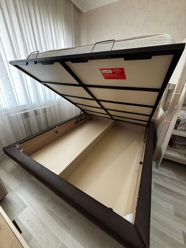 - Çarpayı: yumşaq başlıq (tünd qəhvəyi və krem kombinasiyası), metal/taxta karkas; açılıb-bağlanan baza mexanizmi ilə alt hissədə saxlama üçün yer.