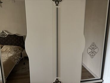 Yataq otağı dəsti – modern və eleqant dizayn Tərkibi: - 4 qapılı, güzgülü qarderob (daxildə asılqan bölmələri, rəflər və şkaf bölmələri) - İki tumba (yan stolçiklər, çekmecəli) - Komod/şkaf güzgü ...