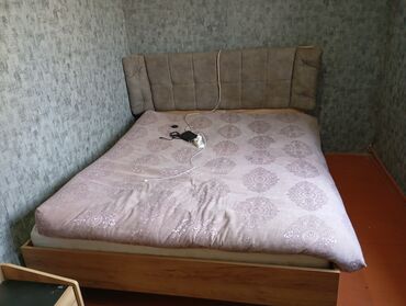 - İki nəfərlik çarpayı: yumşaq kapitonajlı başlıq, taxta korpus.
