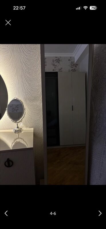 - Tam boy güzgü: düzbucaqlı, nazik açıq rəngli çərçivə, geyim yoxlanışı üçün ideal.