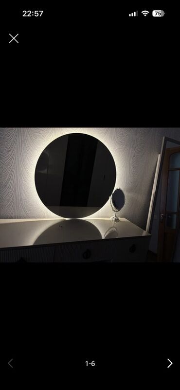 - Dairəvi böyük güzgü: konsolun üstündə, arxa işıqlandırma effekti ilə divarda dekorativ vurğu yaradır.