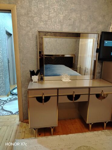 - Vizaj/konzol masa – geniş üst səth, 3 çekmece, 2 yan dolab və iri güzgü