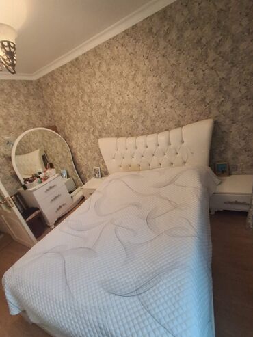 - Güzgülü tualet masası: oval böyük güzgü, bir neçə çekmece ilə kosmetika və aksesuarlar üçün rahat saxlama sahəsi.
