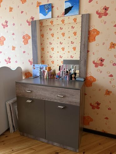 - Tualet masası/komod – üst güzgü paneli, 1 enli çekmece və aşağıda 2 qapılı geniş dolab bölməsi