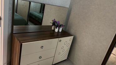 Başlıq: Tep tez kimi təcili satlir Təsvir: tep tez kimi təcili satlir Yataq otağı mebel dəsti: - Rəng: açıq krem və qəhvəyi ağac tonlarının kombinasiyası, dekorativ xətt elementləri ilə - Qardero...