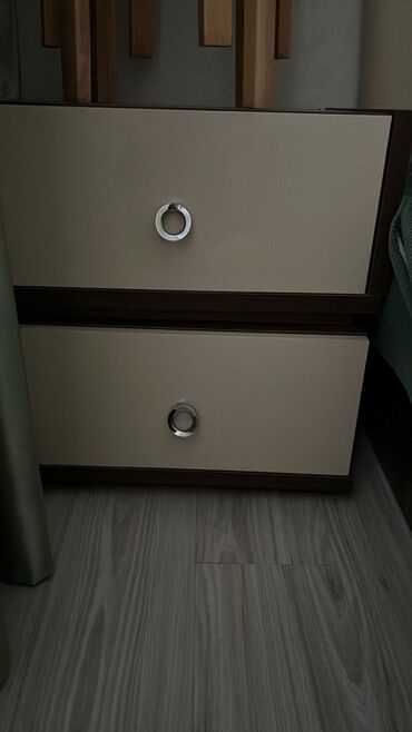- 2 ədəd tumbalar: bej fasadlı, xrom halqa formalı tutacaqlar, iki çekmeceli.