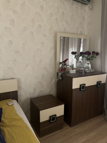 - Güzgü: Komodun üzərində iri çərçivəli güzgü, makiyaj və gündəlik istifadə üçün əlverişli.