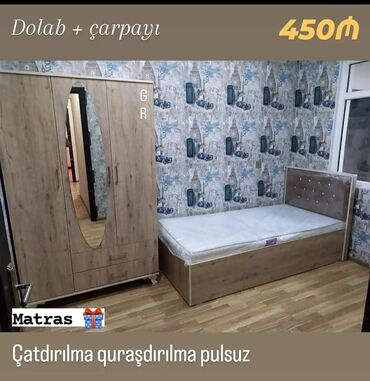 - Şkaf: 3 qapılı, ortada oval güzgü, alt hissədə çekmecələr
