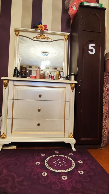 • Tualet masası – böyük güzgü ilə, 3 çekmece, qızılı künc bəzəkləri