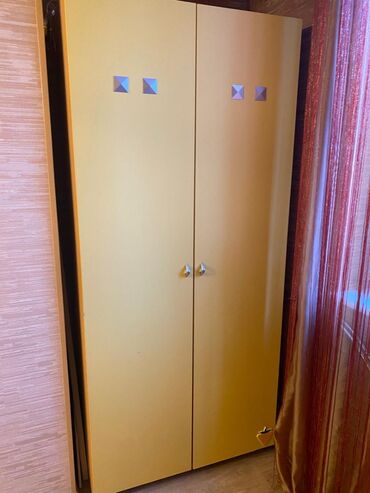 - Geniş sürgülü qapılı şkaf – güzgülü panellər, daxildə asılqan və rəf bölmələri.
