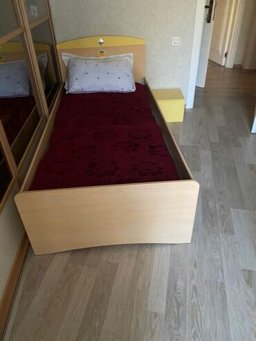 - Tək nəfərlik çarpayı – taxta karkas, başlıq və ayaqlıqla.