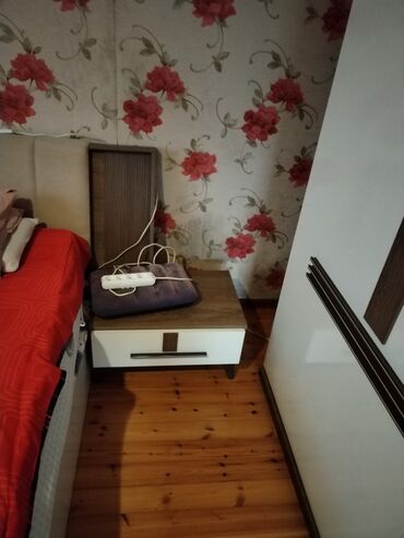 - Tumba (yataq yanı şkafı): üstü ağac dekorlu, aşağı hissəsi ağ rəngdə, uzun tutacaqlı çekmece.