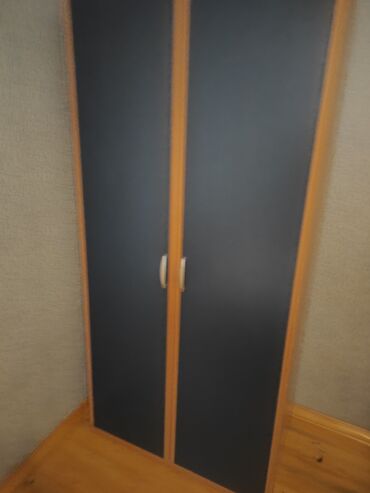 - Iki qapılı şkaf: tünd-boz və ağac tonlarının kombinində, yuxarıdan-aşağıya tutacaqlar.