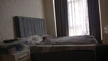 - Çarpayı: geniş ölçülü, yumşaq parça ilə üzlənmiş hündür başlıq. Stabil karkas, rahat yuxu üçün uyğun ölçü. Neytral tünd-boz ton interyerlə asan uyğunlaşır.