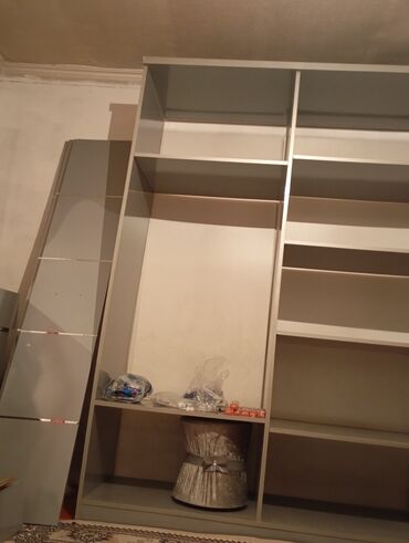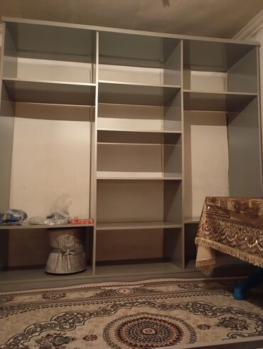 - Dolab sistemi: çoxbölməli, açıq rəfli konstruksiya; paltar, çanta və əşya yerləşdirmək üçün geniş bölmələr.
