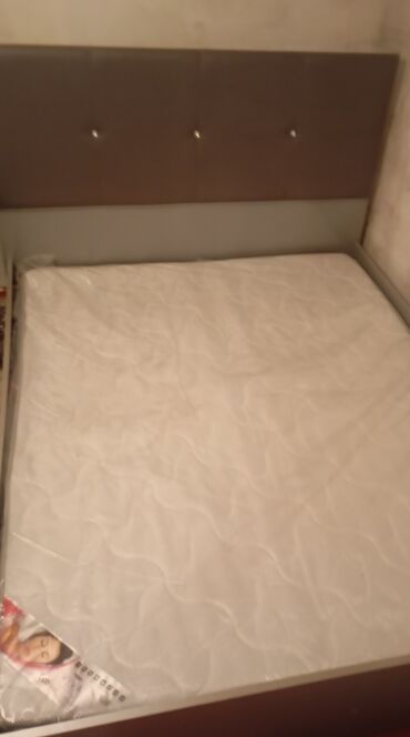- Çarpayı: iri ölçülü, yumşaq başlıqla. Başlıqda dekorativ düymələr. Kənar bortlarla. Üstündə ortopedik döşək (şəkildə).