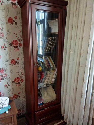 - Tək qapılı şüşəli vitrin/kitab şkafı: aşağıda çekmece