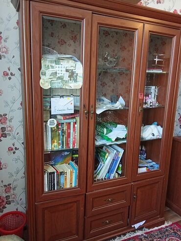 - Vitrin kitab şkafı: 3 şüşəli qapı, aşağı hissədə çekmecə və dolab bölmələri