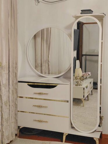 • 1 ədəd tuşlu (makiyaj) komodu – 3 çekmece, böyük dairəvi güzgü